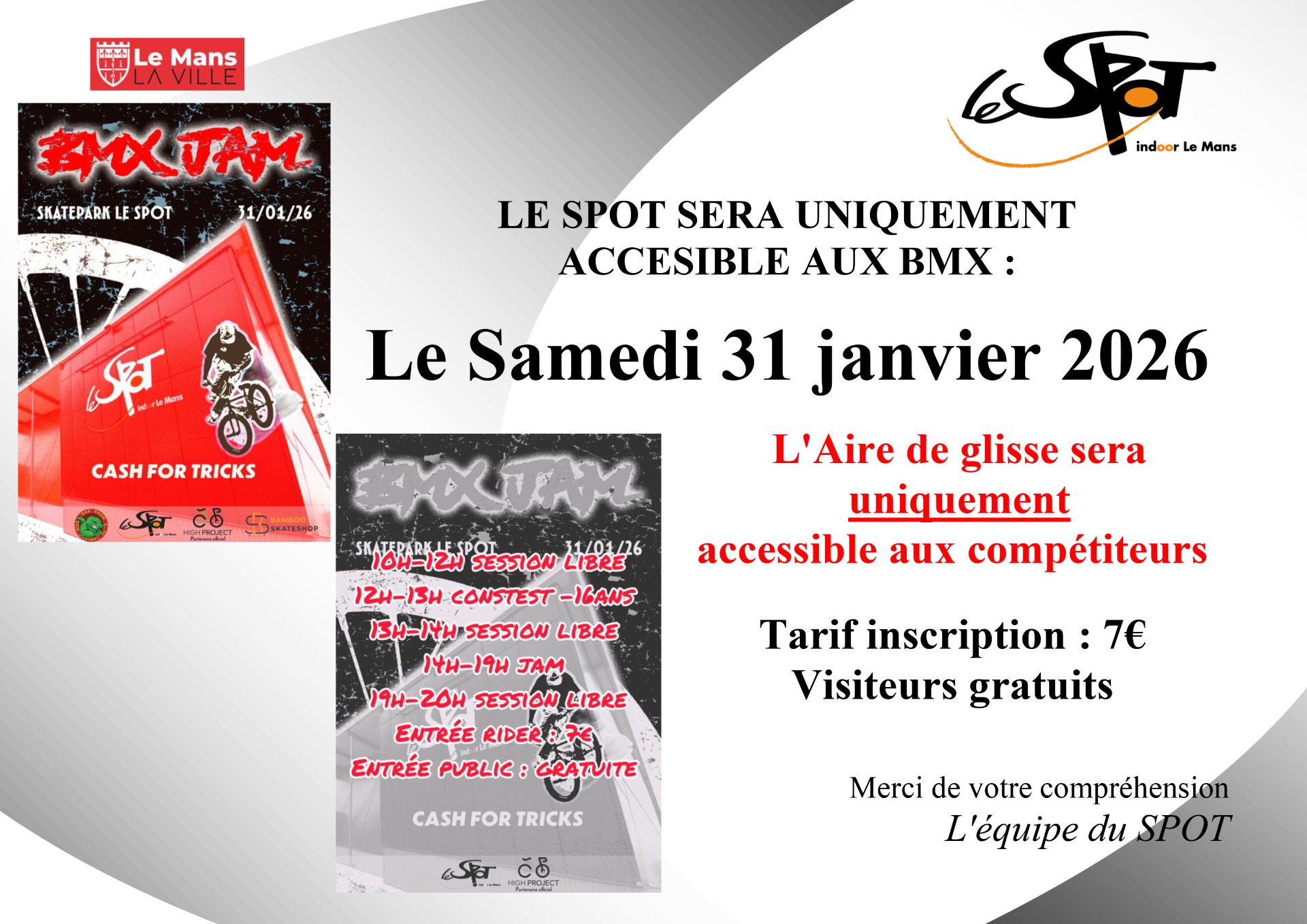 Le Spot est l’un des plus grands skateparks couverts de France, géré intégralement par la Ville du Mans, ouvert aux skateboards, rollers, BMX et trottinettes freestyle.